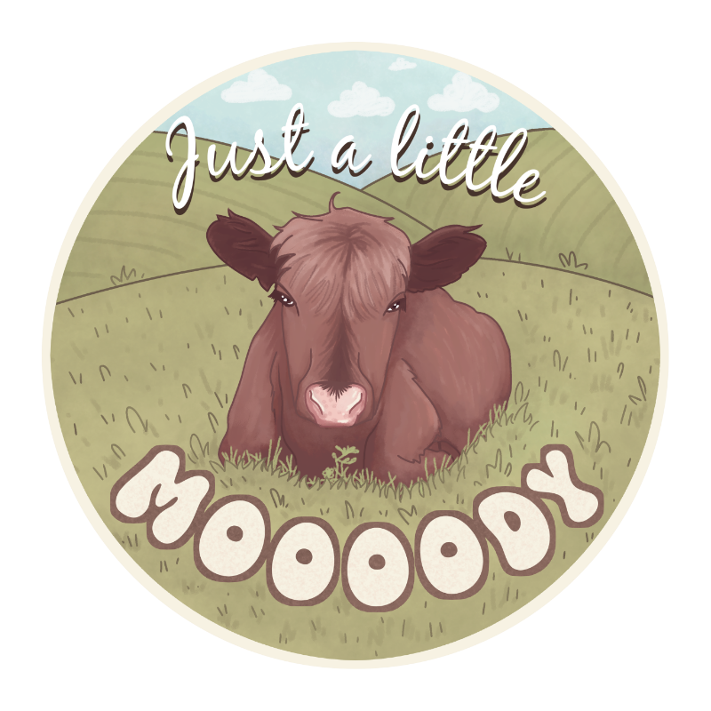 “I’m not grumpy, I’m just ‘Just a Little Moooody.’ Don’t make me use my ‘Mom Voice’ on the livestock.”